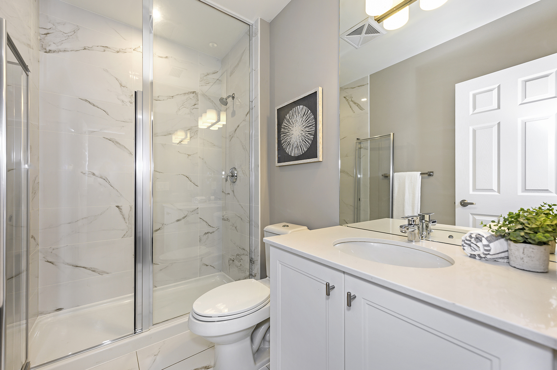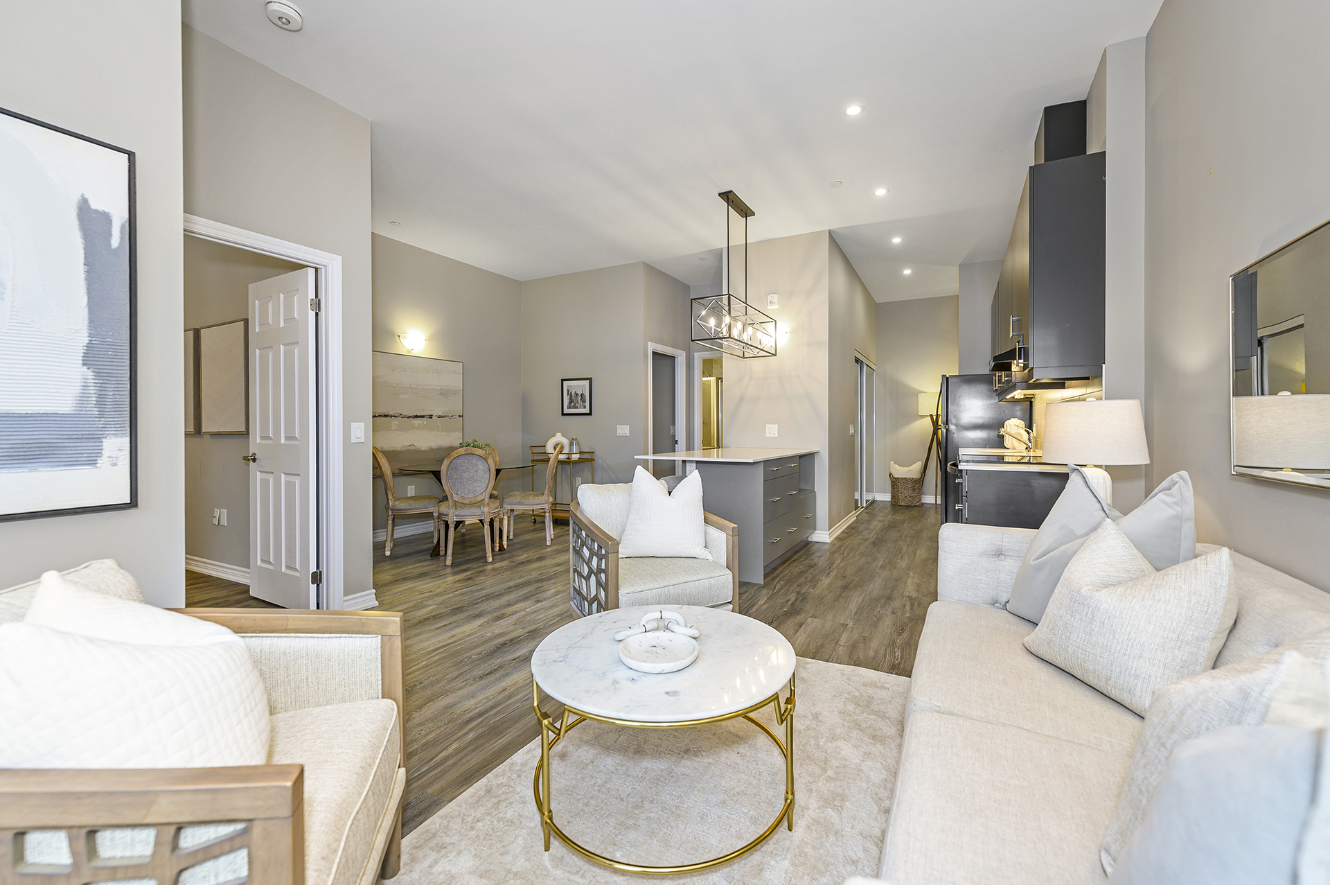 Welcome to this stunning penthouse suite where luxury, light, and lifestyle come together. This sun-filled 2-bedroom, 2-bathroom condo features 960 square feet of beautifully finished living space, soaring 10-ft ceilings, remote Hunter Douglas blinds, and a spacious entryway that sets the tone the moment you walk in. Take in unobstructed escarpment and sunset views from the open-concept living and dining area, perfect for relaxing or entertaining. The large primary bedroom offers a generous closet and a stylish ensuite with a glass shower, while the second bedroom is equally spacious and ideal for guests, a home office, or family. A modern 3-piece bathroom and ample in-suite storage round out the thoughtful layout. Residents enjoy top-tier building amenities, including a rooftop deck, guest suites, party room, exercise room, and visitor parking. With its convenient location you’re just steps from shops, dining, parks, and the Milton GO Station making commuting effortless. A rare penthouse offering the perfect blend of comfort, style, and convenience.